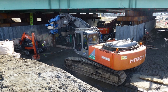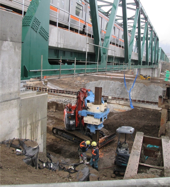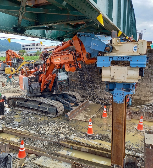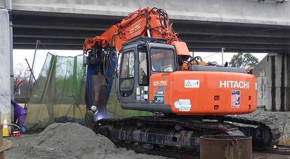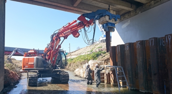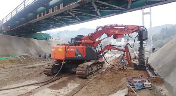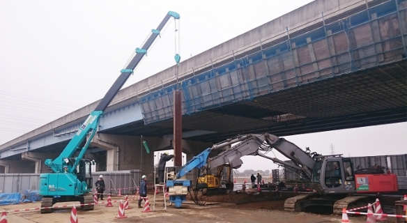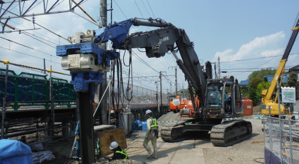 低空頭・桁下・鉄道、道路橋下・電線下でのバイブロハンマ工法