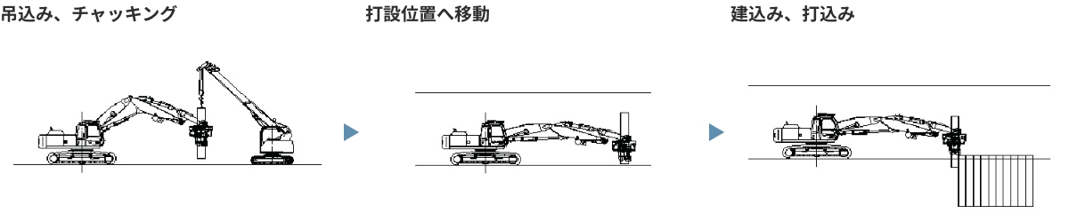 低空頭型自走式油圧バイブロハンマ工法 LH-RR・LH-DH・LH-CDH工法 併用