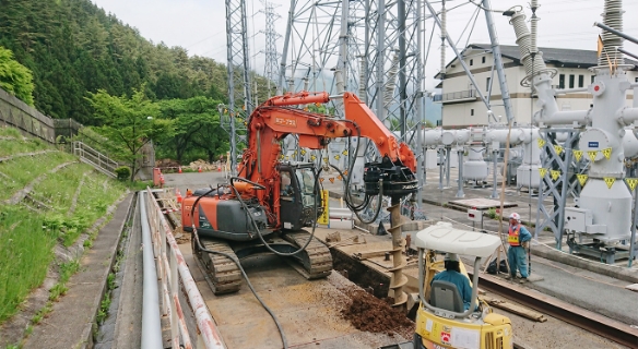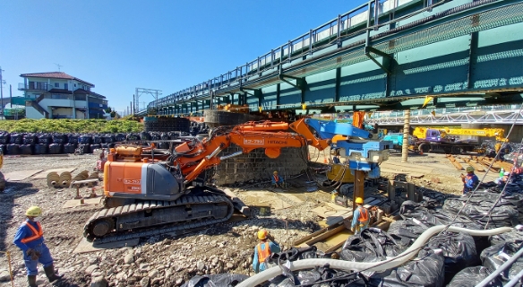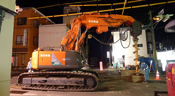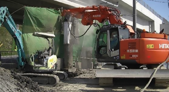 低空頭・桁下・鉄道、道路橋下・電線下でのアースオーガ工法