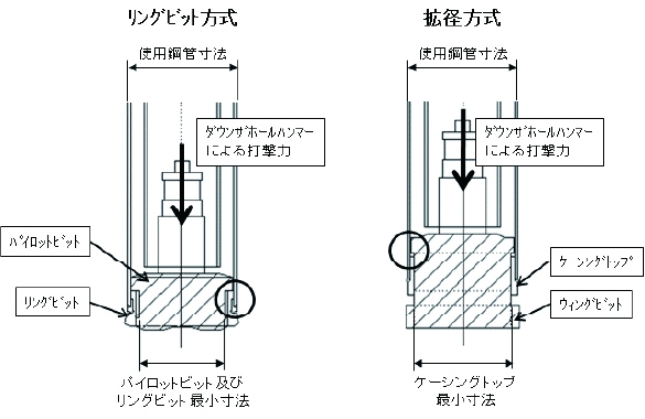 | 低空頭型ケーシング連行ダウンザホールハンマー工法 | 拡径式方式 | 5.5(5.0)※3 | 崩壊層を含む |